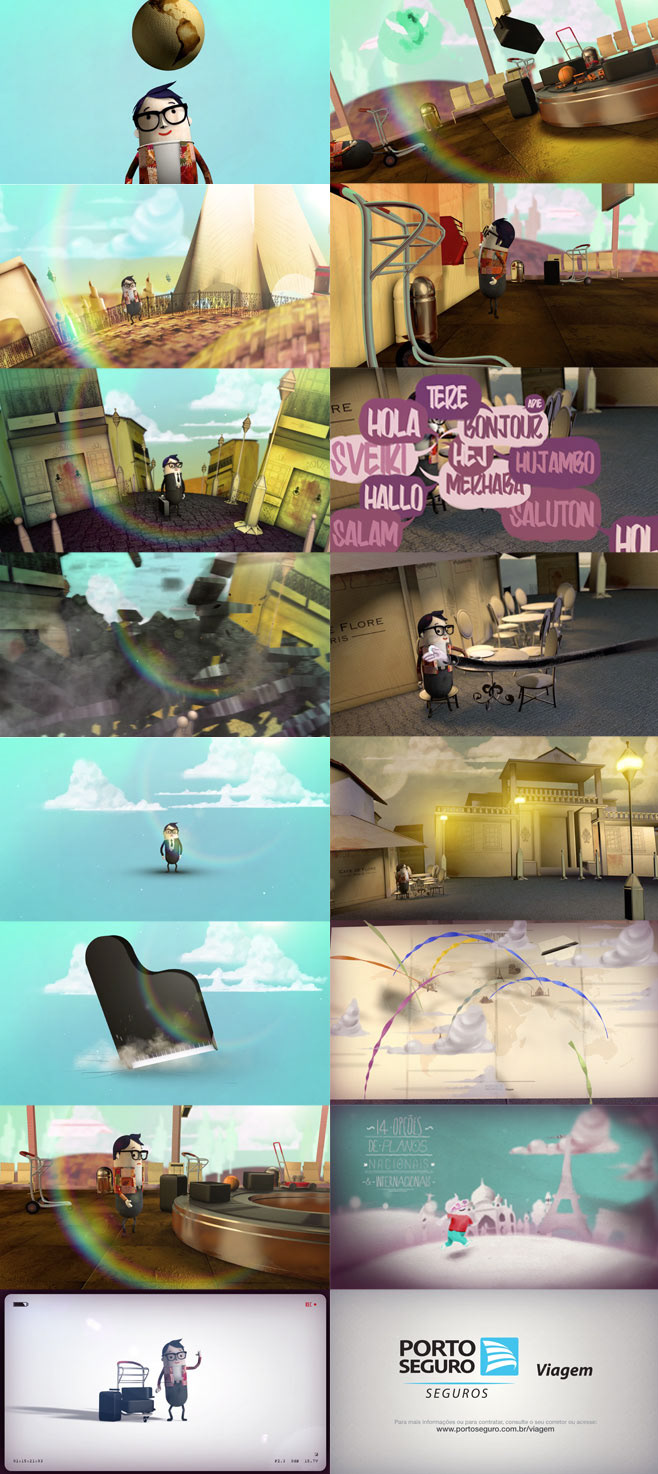 Animação para divulgar o serviços de seguro viagem da Porto Seguros. - Storyboard, Concepts e Animação: Rubik Roteiro e atendimento: Agência Iônica
